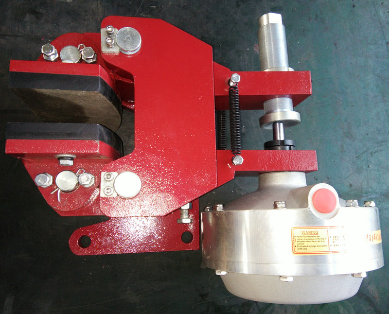 制動閘塊自動隨位裝置,以確保制動塊在整機開合運作狀態(tài)下與主機制動盤上下間隙均等。