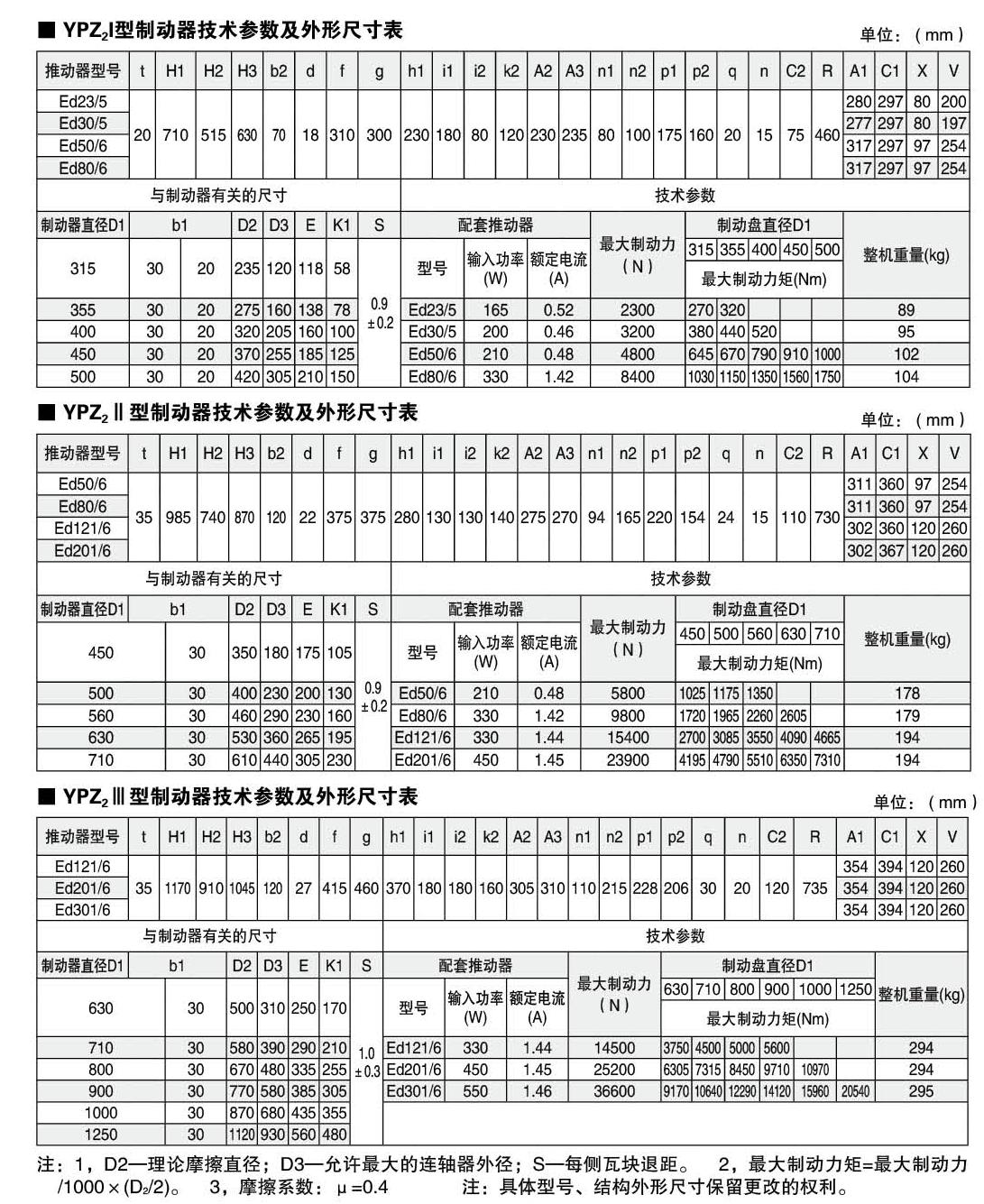 應(yīng)用:YPZ2ⅠⅡⅢ系列電力液壓盤式制動器是一種高性能、多功能的先進(jìn)產(chǎn)品。由于其具有瓦塊退距自動均等,襯墊磨損自動補(bǔ)償?shù)认冗M(jìn)功能,使用過程中維護(hù)非常便捷。通過增設(shè)各種限位開關(guān),可給主機(jī)PLC提供所需要的聯(lián)鎖保護(hù)信號。非常適合各種現(xiàn)代的大型專用裝卸機(jī)械、起重運(yùn)輸機(jī)械、冶金設(shè)備、礦山設(shè)備及工程機(jī)械中各種機(jī)構(gòu)的減速和維持(停車)制動。符合標(biāo)準(zhǔn):電力液壓盤式制動器符合DIN15435標(biāo)準(zhǔn)和JB/T7020-2006標(biāo)準(zhǔn)。配套符合DIN15430標(biāo)準(zhǔn)的Ed系列推動器。主要特點(diǎn):▲ 聯(lián)鎖